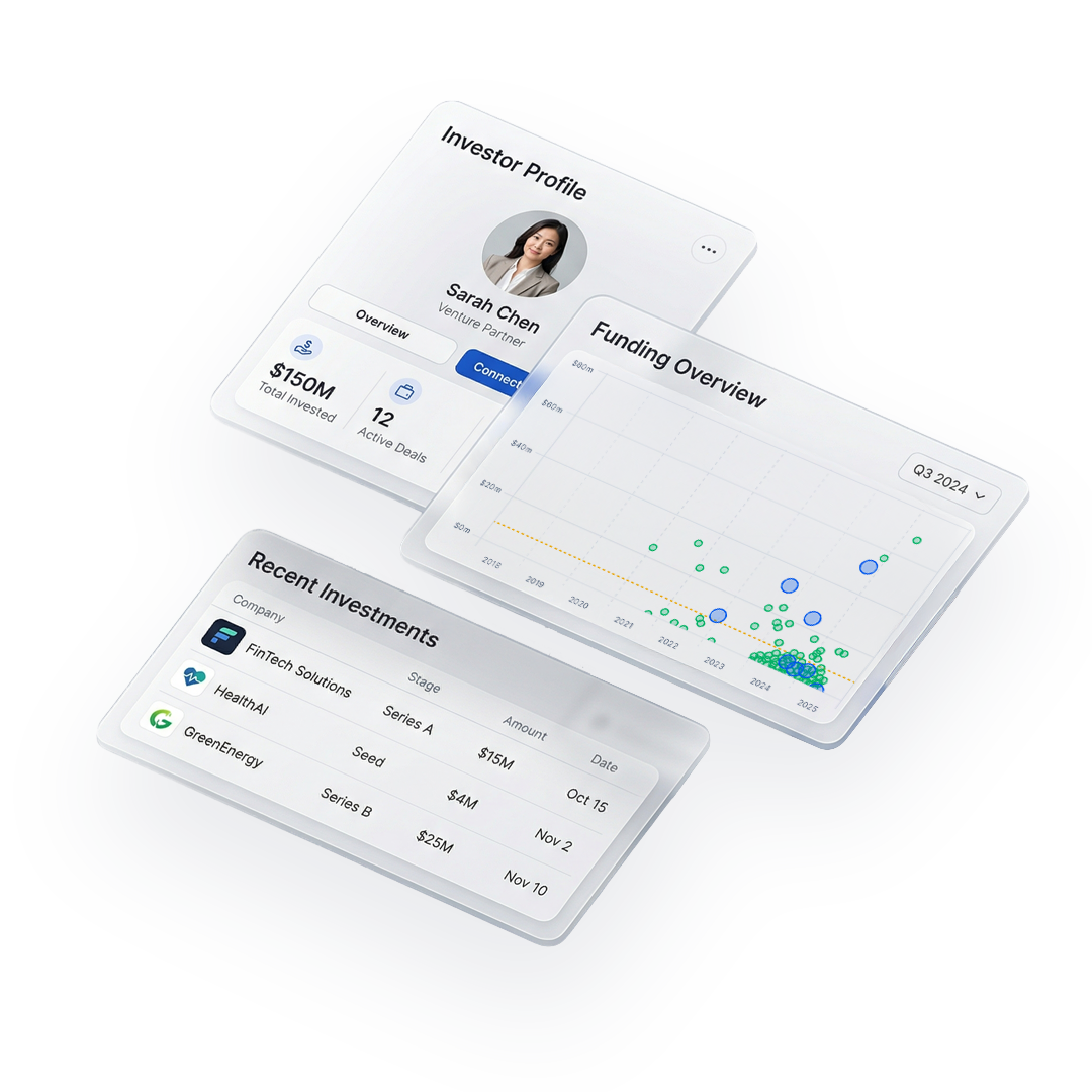 Track funding trends, lead investors, and sector shifts in real time.